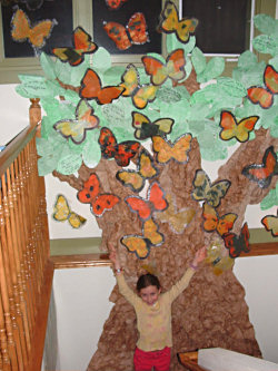 These photos are from our unit on the Monarch Migration and Dio de los Muertos. We used two songs for the unit from the “Heart of the World” recording– “Butterfly Wishes” and “Magic Wings.” Below there’s a picture of a diorama by my daughter Sequoia in fourth grade for Dio de los Muertos.